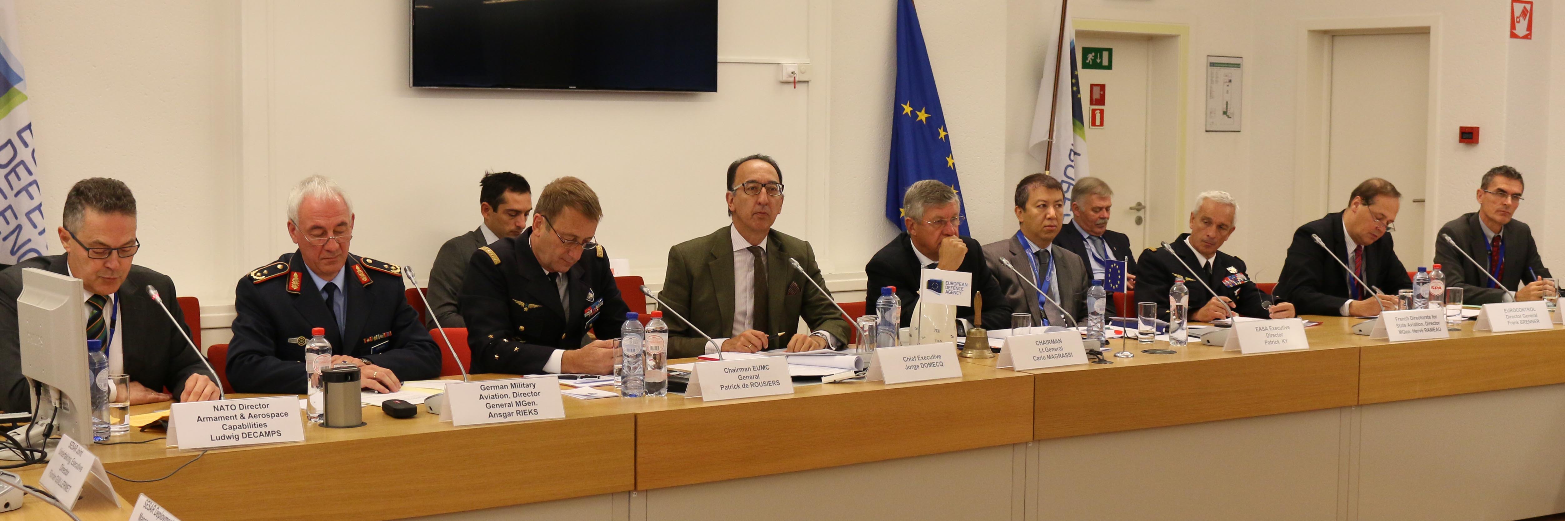 On 22 September, the European Defence Agency (EDA) hosted the 7th edition of the SES/SESAR Military Implementation Forum, bringing together the top management of the European Commission, the European Aviation Safety Agency (EASA), Eurocontrol, the SESAR Joint Undertaking, the SESAR Deployment Manager, NATO and of the defence community. They addressed the following challenges: What is the foreseeable evolution of military aviation and airspace usage over the next two decades? How to accommodate the military vision in the aviation regulatory and operational environment? How are military interests taken into account in SESAR?