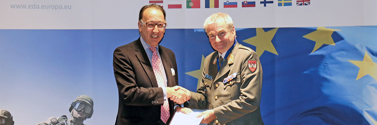 Jorge Domecq, the Chief Executive of the European Defence Agency, shared today the Personnel Recovery Functional Area Service Advanced Technology Demonstrator (PR FAS ATD) with Lieutenant General Wolfgang Wosolsobe, Director General of the EU Military Staff. During the meeting at the Agency other topics of common interest like EDA support to operations and other capability development issues and projects were discussed.