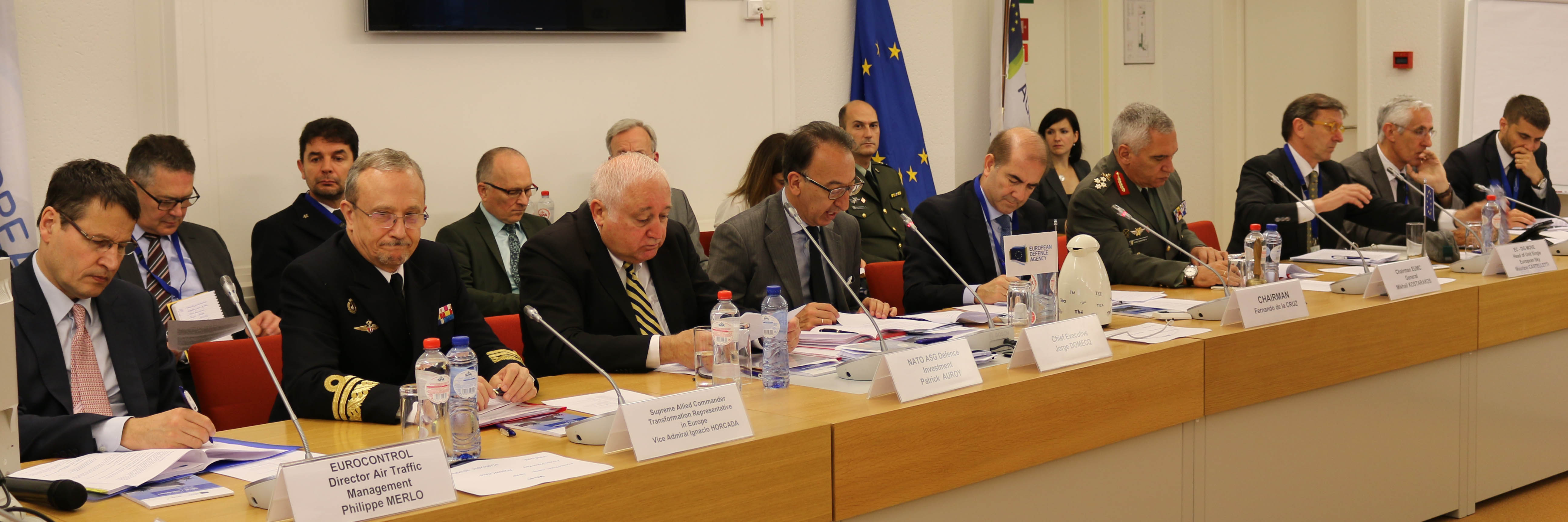 On 31 May, high-level representatives and experts from the Member States, EUMC and EUMS Staff, NATO Allies and Officials of the European Commission (DG MOVE), SJU, SDM, EASA, NATO and EUROCONTROL met at the European Defence Agency for the 8th edition of the SES/SESAR Military Implementation Forum. The meeting was followed by the first EDA Single European Sky Military Aviation Board (ESMAB) policy level meeting.