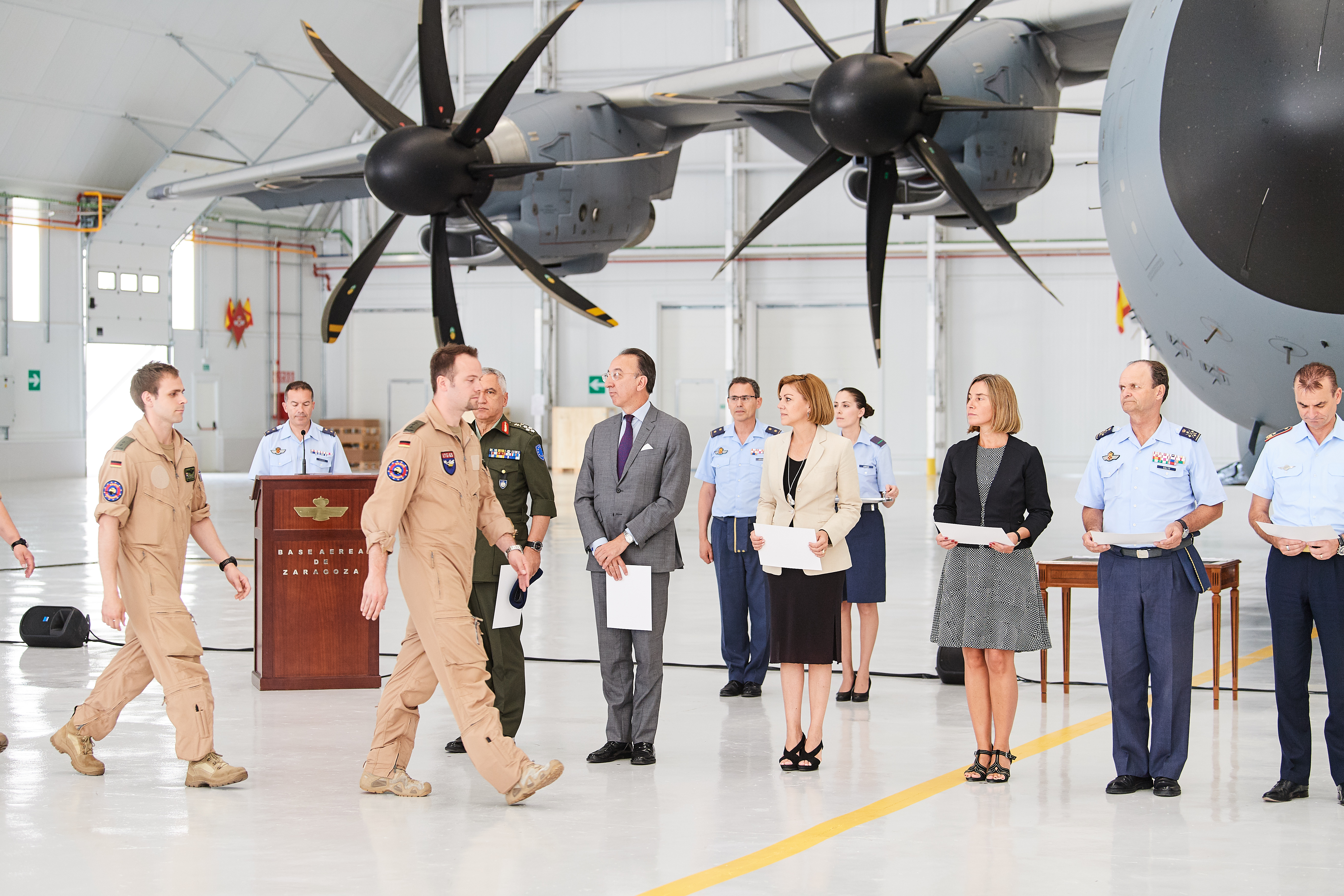 Visiting delegations also attended a tactical display, followed by the graduation of 4 aircrews from three Member States (Spain, Germany, Poland) of the latest edition of the European Advanced Airlift Tactics Training Course (EAATTC 17-3), and visited the EDA’s innovate 3D-printing in defence project. The main ceremony was also addressed by HR/VP Federica Mogherini and Minister Dolores de Cospedal.