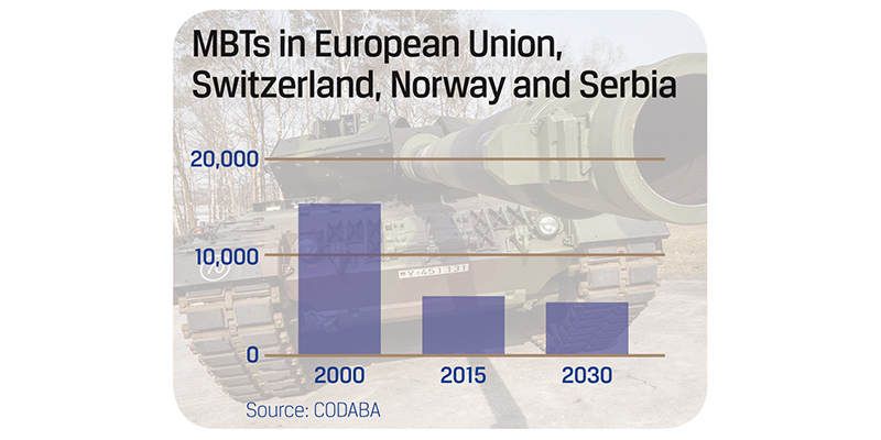 The number of MBTs in EU Member States has regularly decreased, from 15.000 in the year 2000 to just 5.000 today. Modernisation plans for existing main battle tank assets are limited, with no substantial increase of European MBT capabilities to be expected in the short or medium term. Traditionally, most EU countries use European or Soviet legacy equipment. Since the dependency on Soviet legacy technology raises a number of concerns it can be anticipated that next-generation MBTs should be more procured from sources that can guarantee security of supply in the longer term.