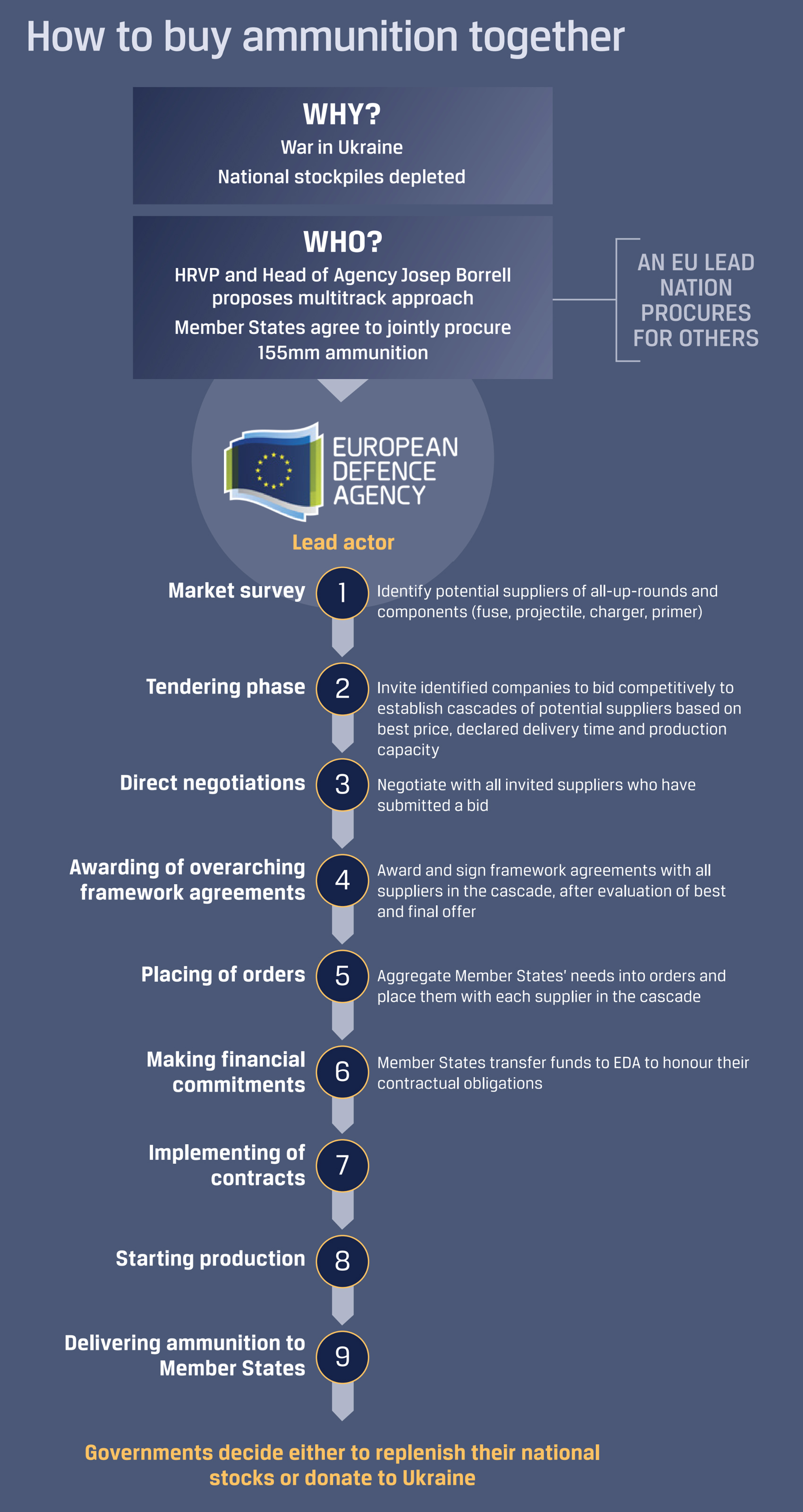 EDA is putting in place two filters to ensure that ammunition can actually be produced once orders are made, and then used in battle.