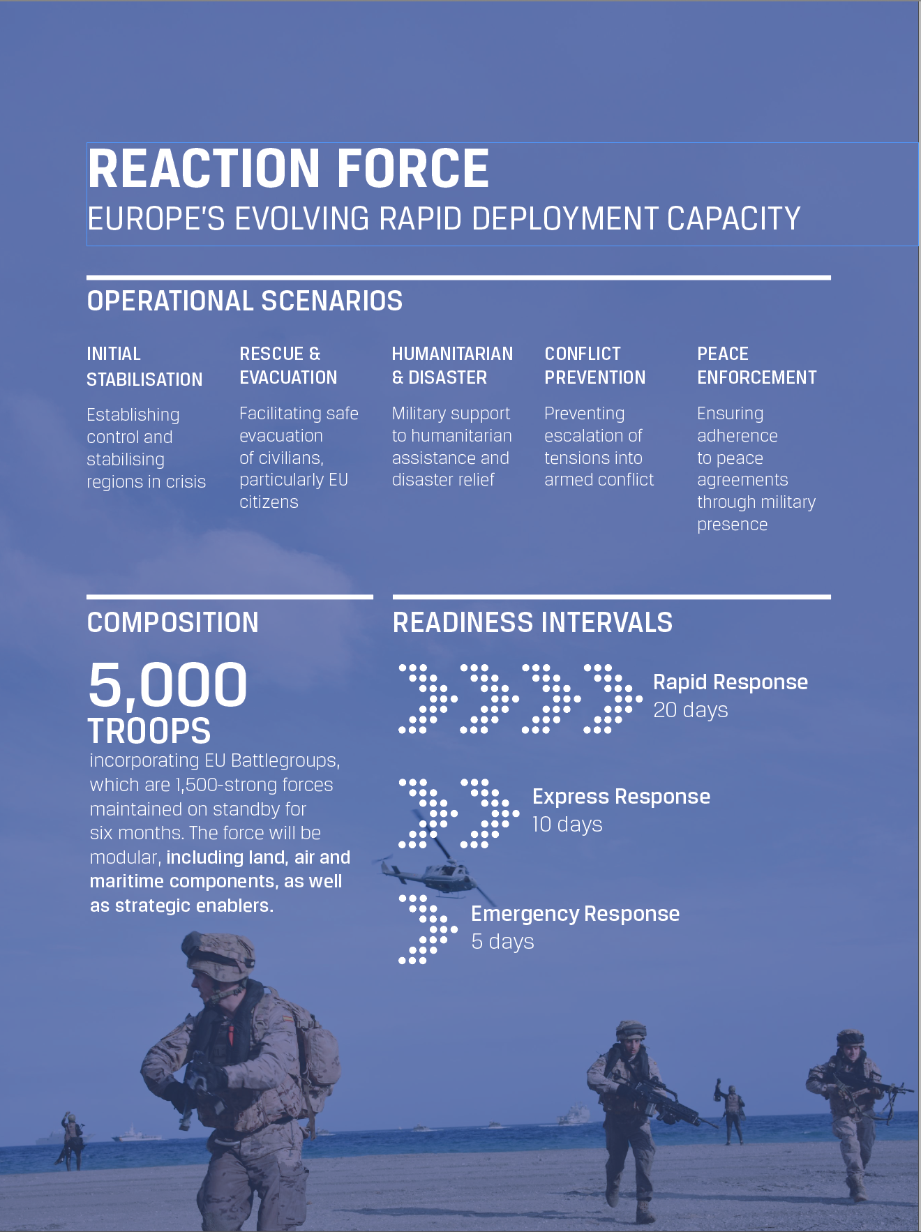 - Establishing a EU Rapid Deployment Capacity (RDC) of up to 5,000 troops for various crises
