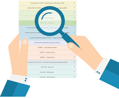 Additionally, you may want to EXPLORE ALL European funding opportunities in detail by clicking on “DETAILED VIEW PER FUNDING SOURCE” (after the comparative view).